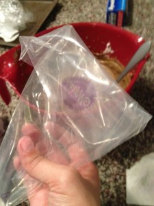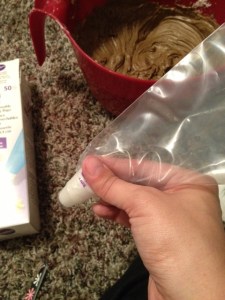 Using a big spoon, press however much icing you need into the bag, then twist the top shut.