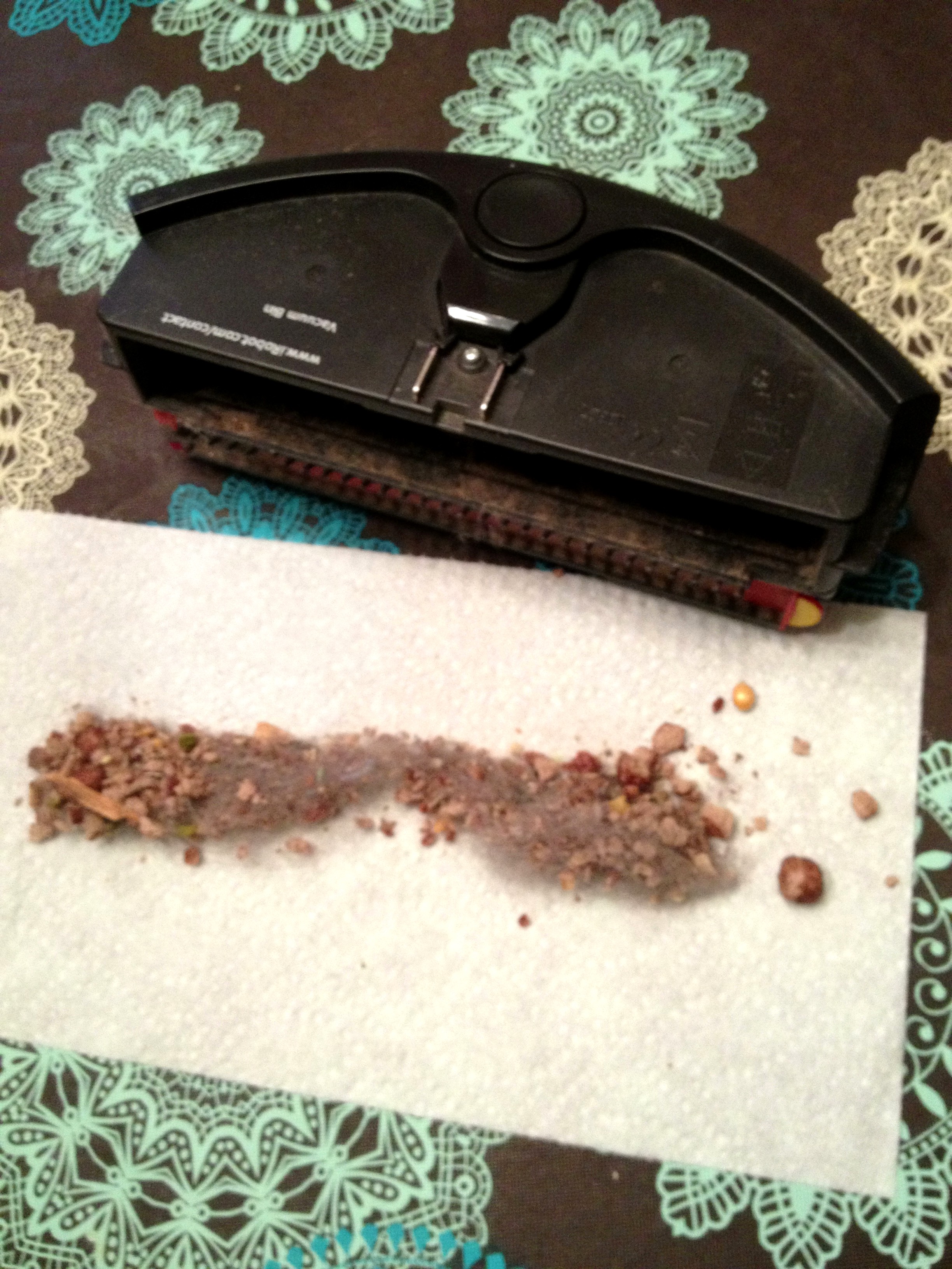 Now, the one I have (the 560 model; it’s apparently out dated now) has a cleaning schedule that it follows… every day at 8 AM, it turns itself on and vacuums the living room, dining area, and kitchen. My only responsibility is to remember to empty the bin when it’s done.