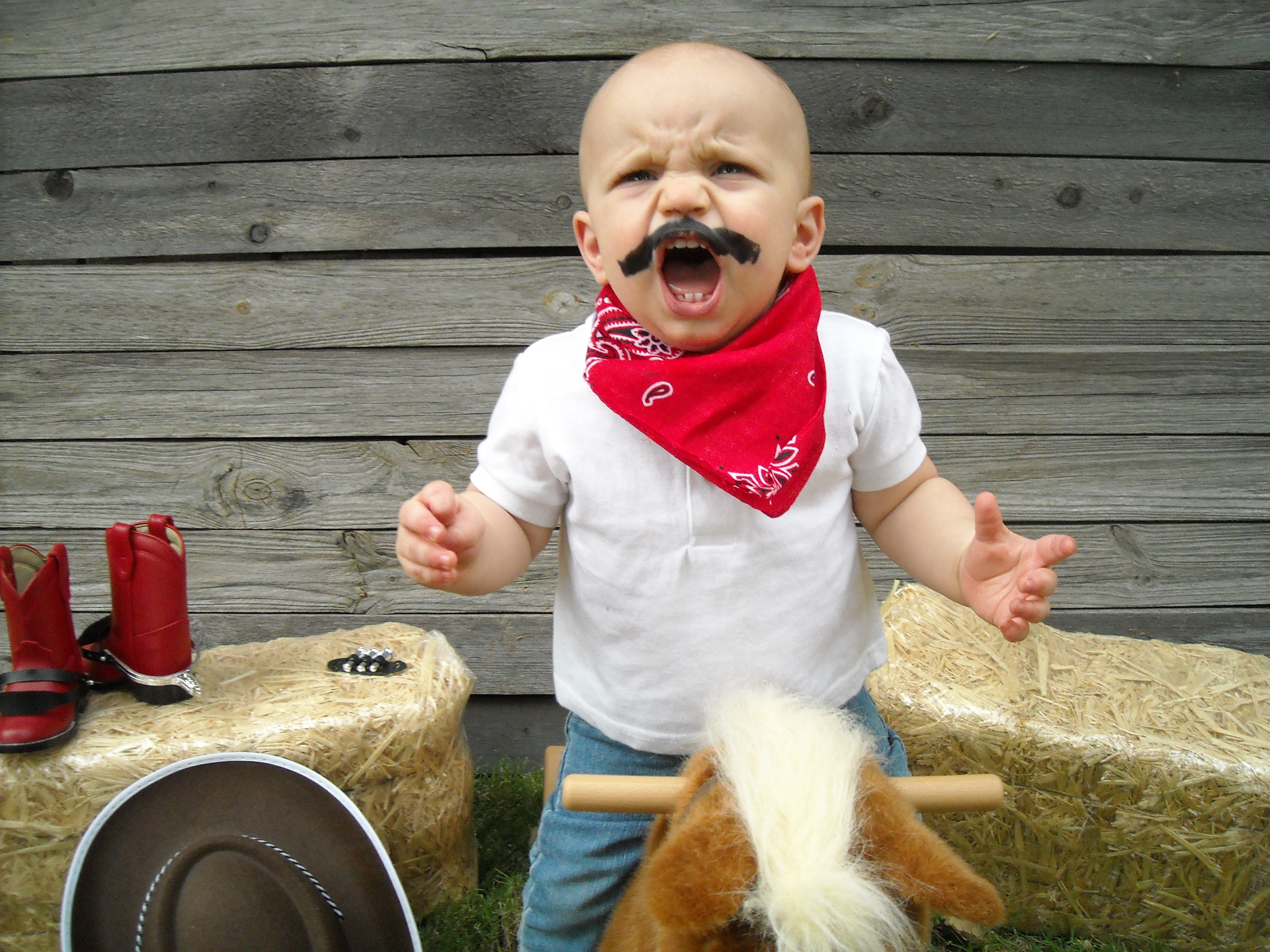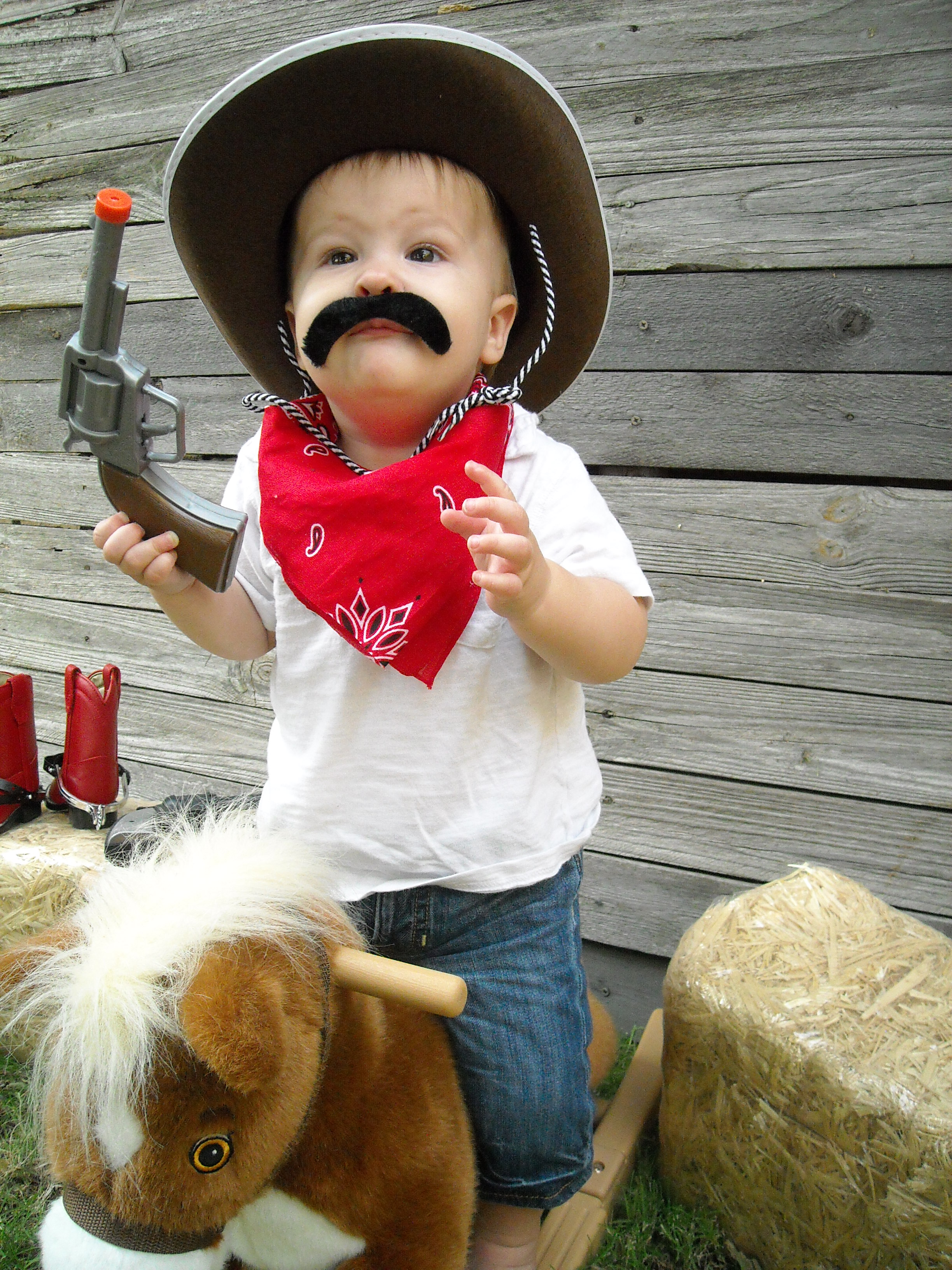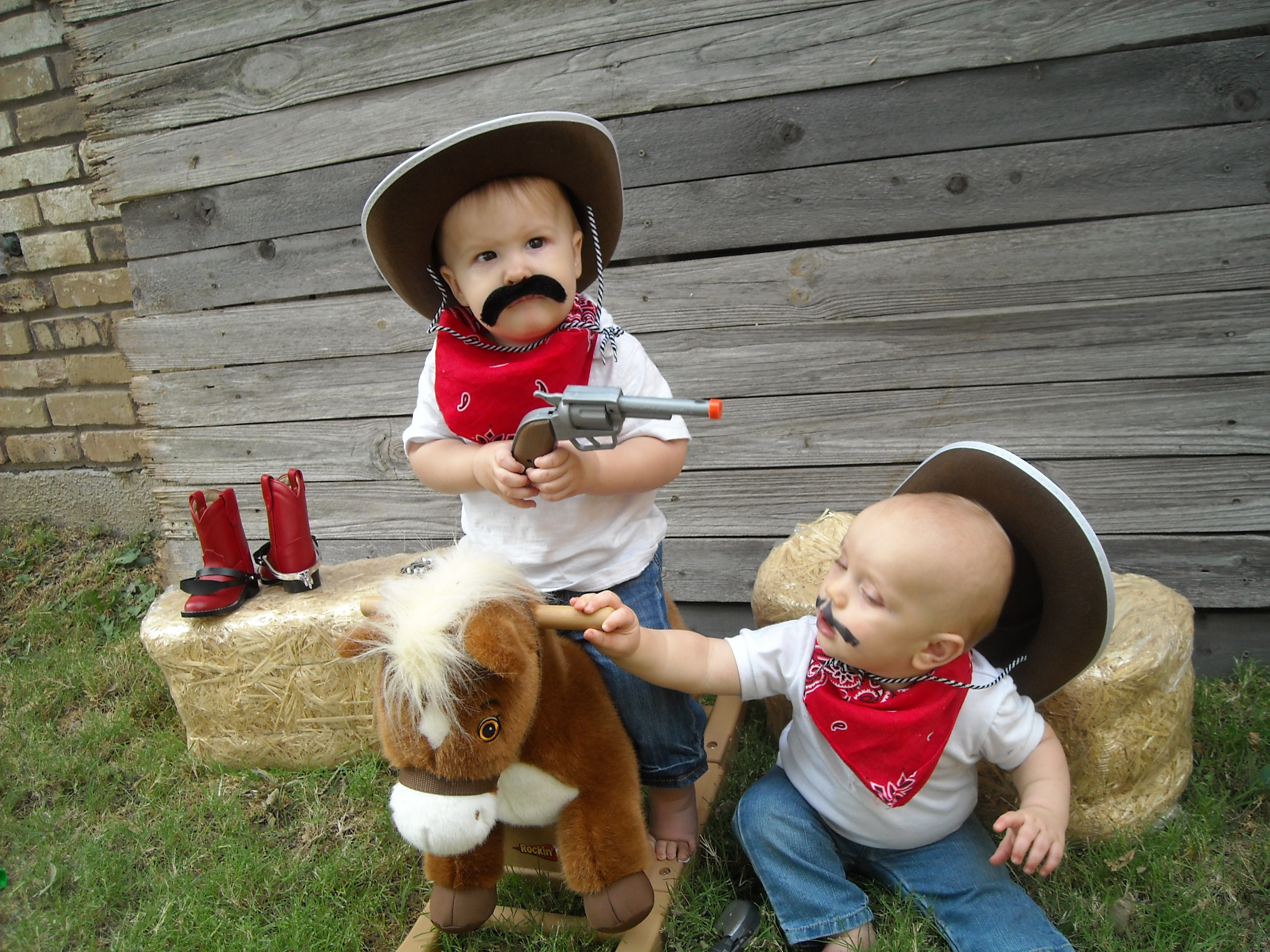 So when she wanted to throw the boys a 1 year birthday party, things quickly spiraled out of control. I mean really: it started with us giggling over the idea of a yellow clown cake (don’t ask) and ended with a hardcore cowboy theme, complete with a cowboy photo shoot, “Wanted” poster invitations, an armadillo cake, and more.