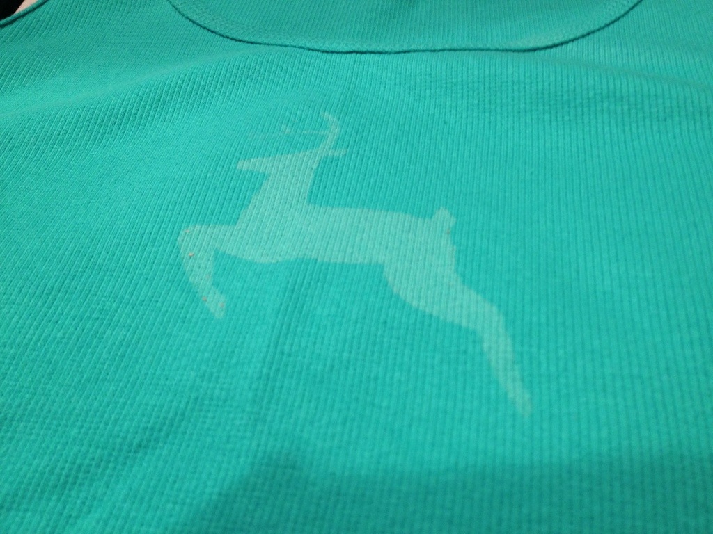 Since I work at a John Deere dealership, I have often wanted more John Deere shirts. So, I took a thin piece of cardboard (I’m sure card stock would work, too) and freehanded the John Deere logo on it. I then used an exacto knife to cut out that logo.