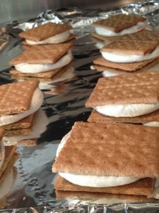 So, having never made s’mores any other way, I set out to do some Pinterest research and found this crazy woman’s gourmet version of s’mores. I was intrigued by the other ingredients she added, but decided I should try walking before flying.
