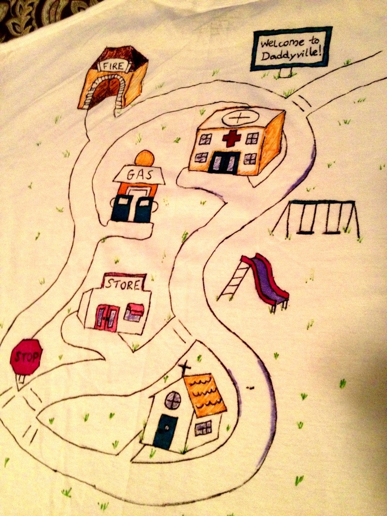 So, using the pattern provided and some sharpies, I created “Daddyville.” (I also created “Pop-popville” for my dad.)