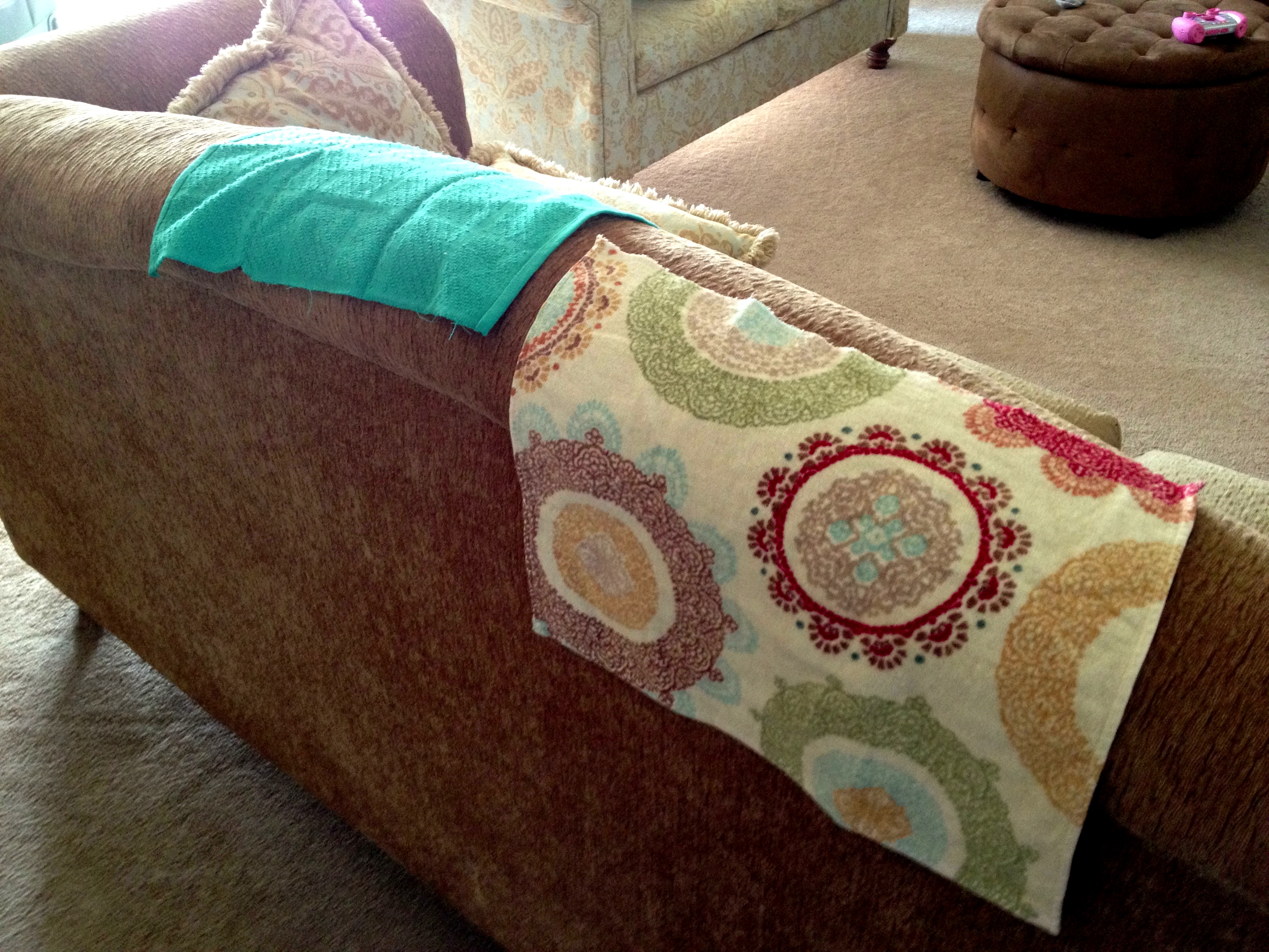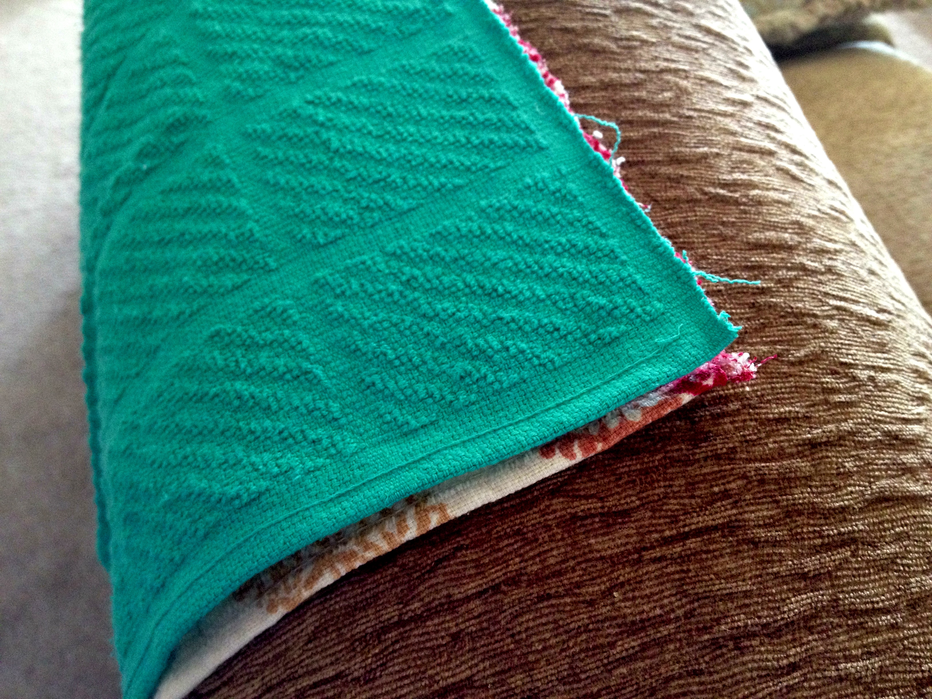 I then lined up the towels, being sure that the hem was facing as I wanted it to… both hems should be the same direction, with the raw edge of the towels together. This will be where you’ll be sewing.