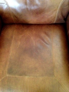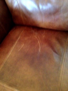 So after making this, it occurred to me that, with that much olive oil, I could also use this cleaner on leather. It works well! It even helped to darken some scratches on my leather sofa: