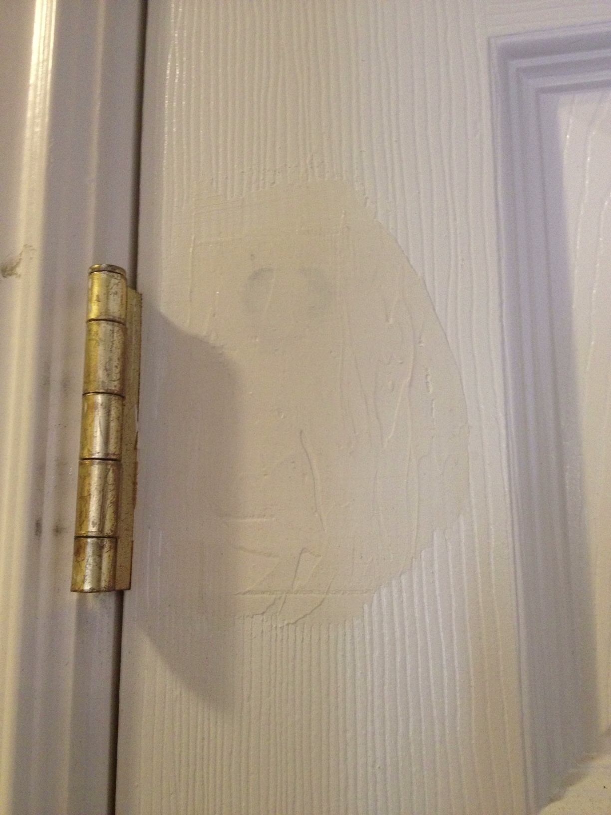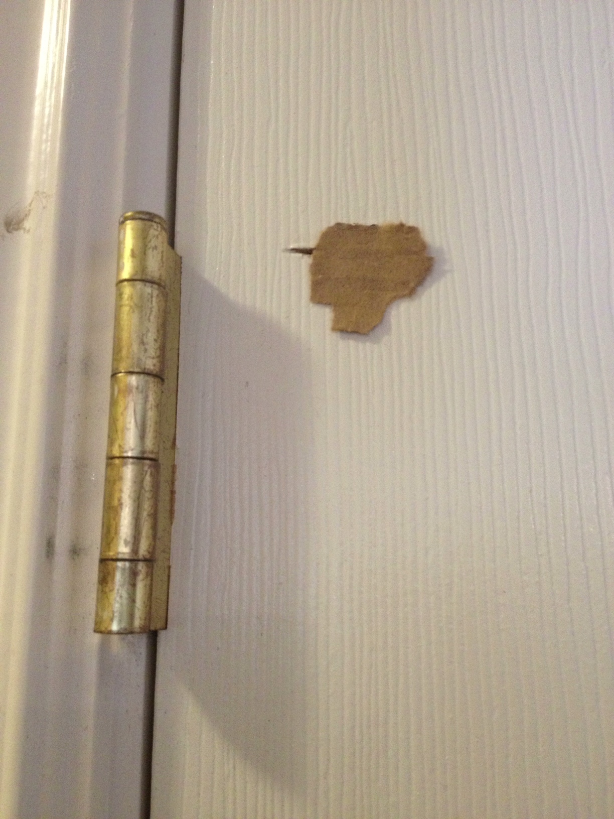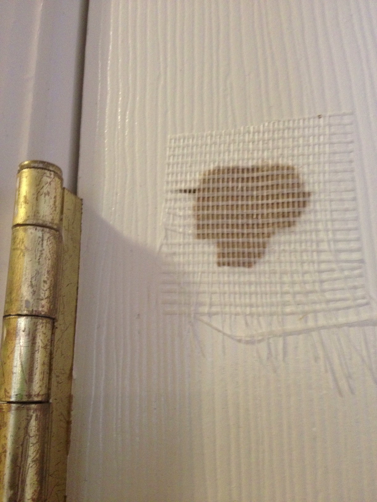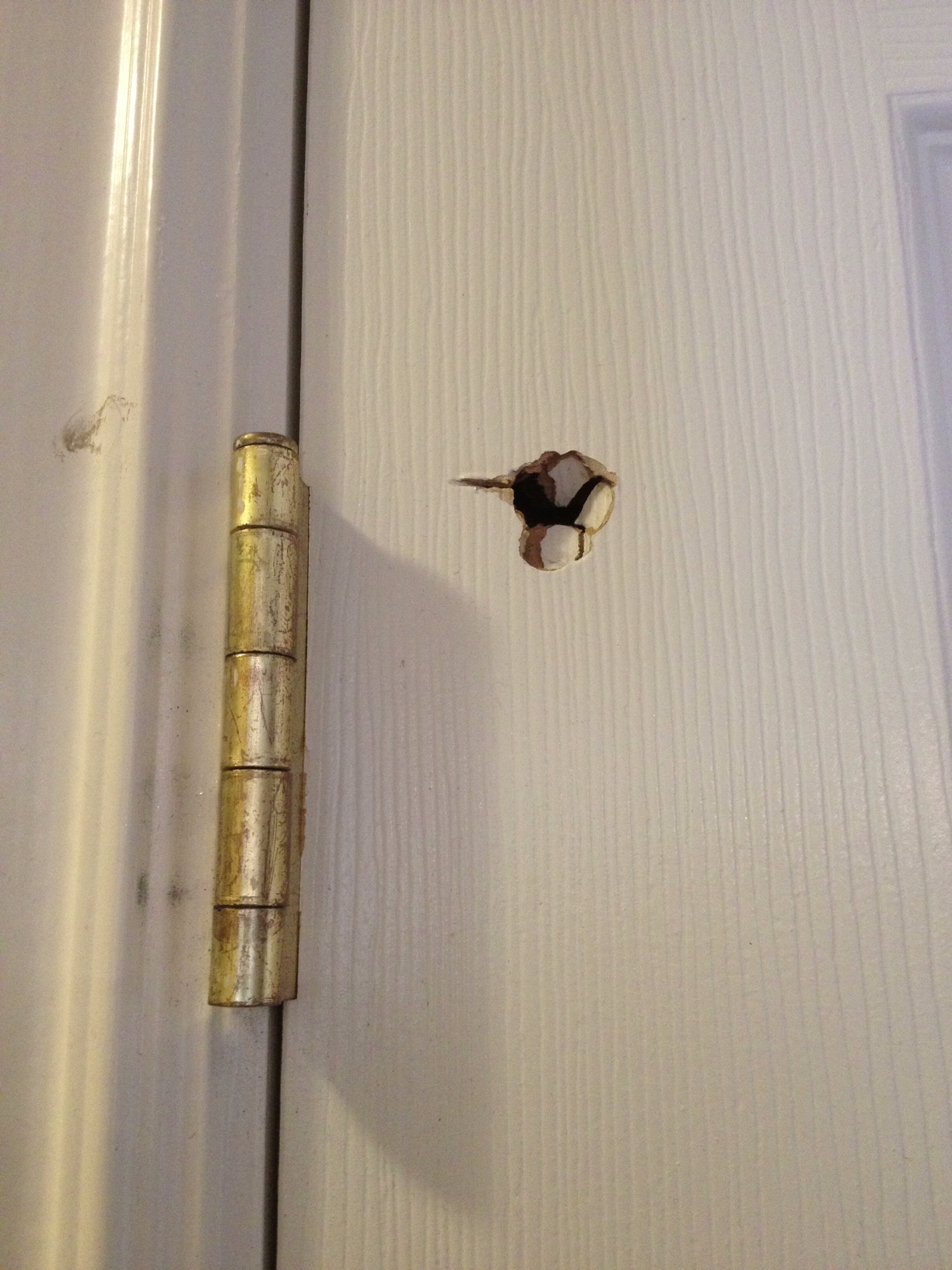 1. I remember that we used to get holes in our doors, and my dad had some kind of foam he would spray into them. After it was dry, he’d sand it down and proceed with painting.