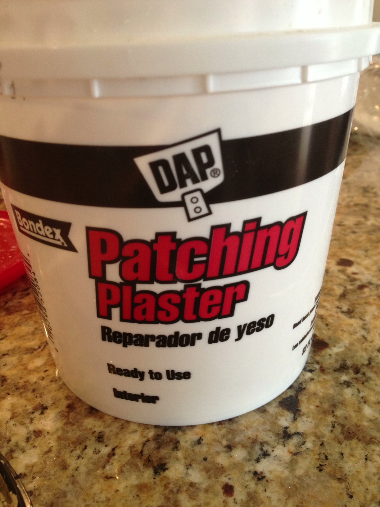 That brings you to this stage.  Now, you can sand down the plaster to make it smooth.  If you’ve been patching a wall, you will want to sand it down smooth and then imitate the texture used on the existing wall.  (There are various textures in a can that you can buy and Lowe’s or Home Depot.)