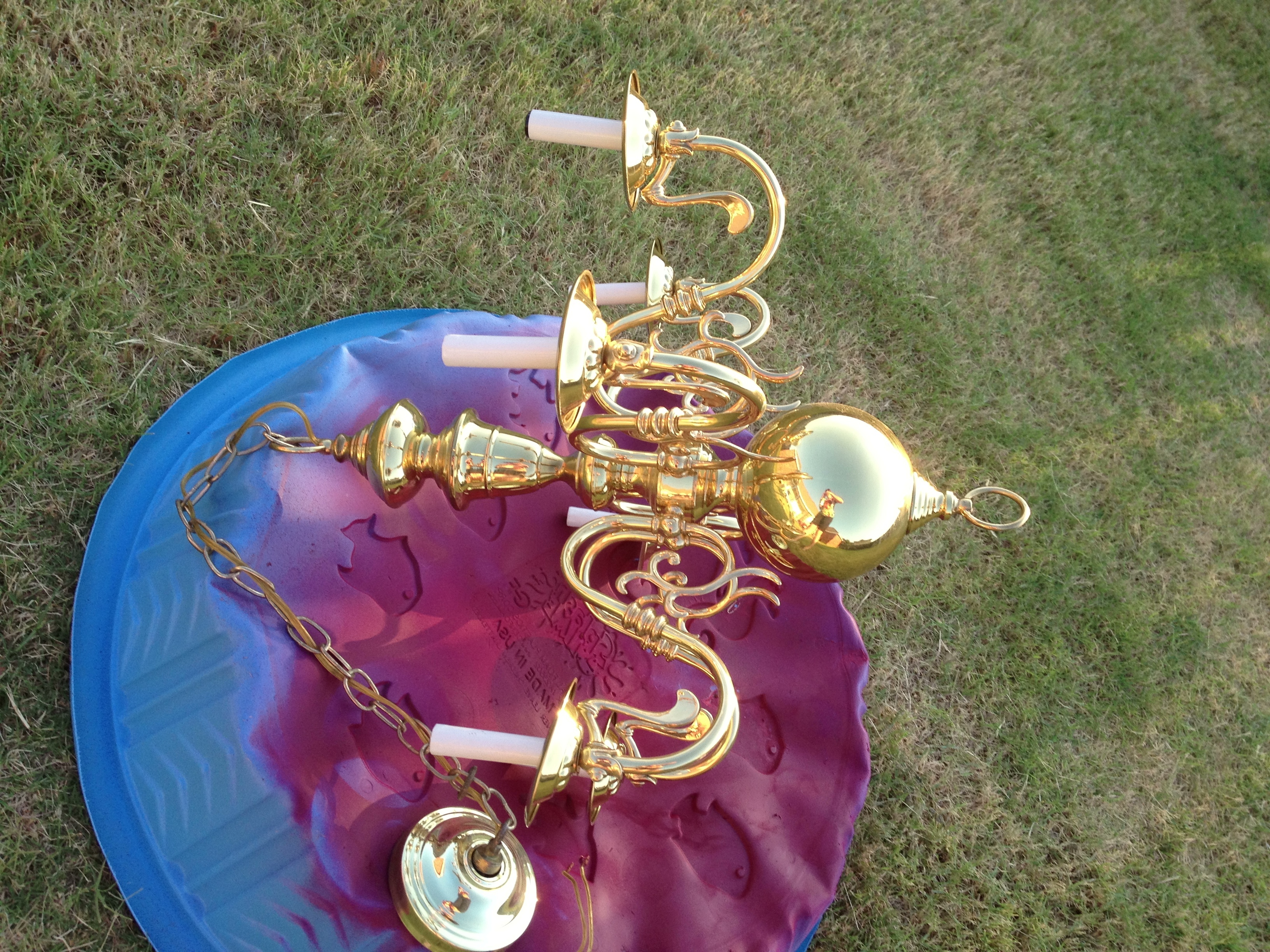 But really, my favorite kind of light fixture update is to paint is a chandelier. Take this lovely brass chandelier that was on its way to the dumpster: